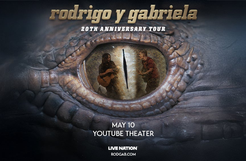 Rodrigo y Gabriela will mark the 20th anniversary of their self-titled 2006 debut album with a series of very special shows featuring the GRAMMY® Award-winning duo performing the landmark collection in its entirety. Rodrigo Y Gabriela 20th Anniversary Tour Stops At YouTube Theater in Inglewood, CA On May 10, 2026. Tickets on sale via presales starting December 11; general on-sale begins December 12 on Ticketmaster.com.