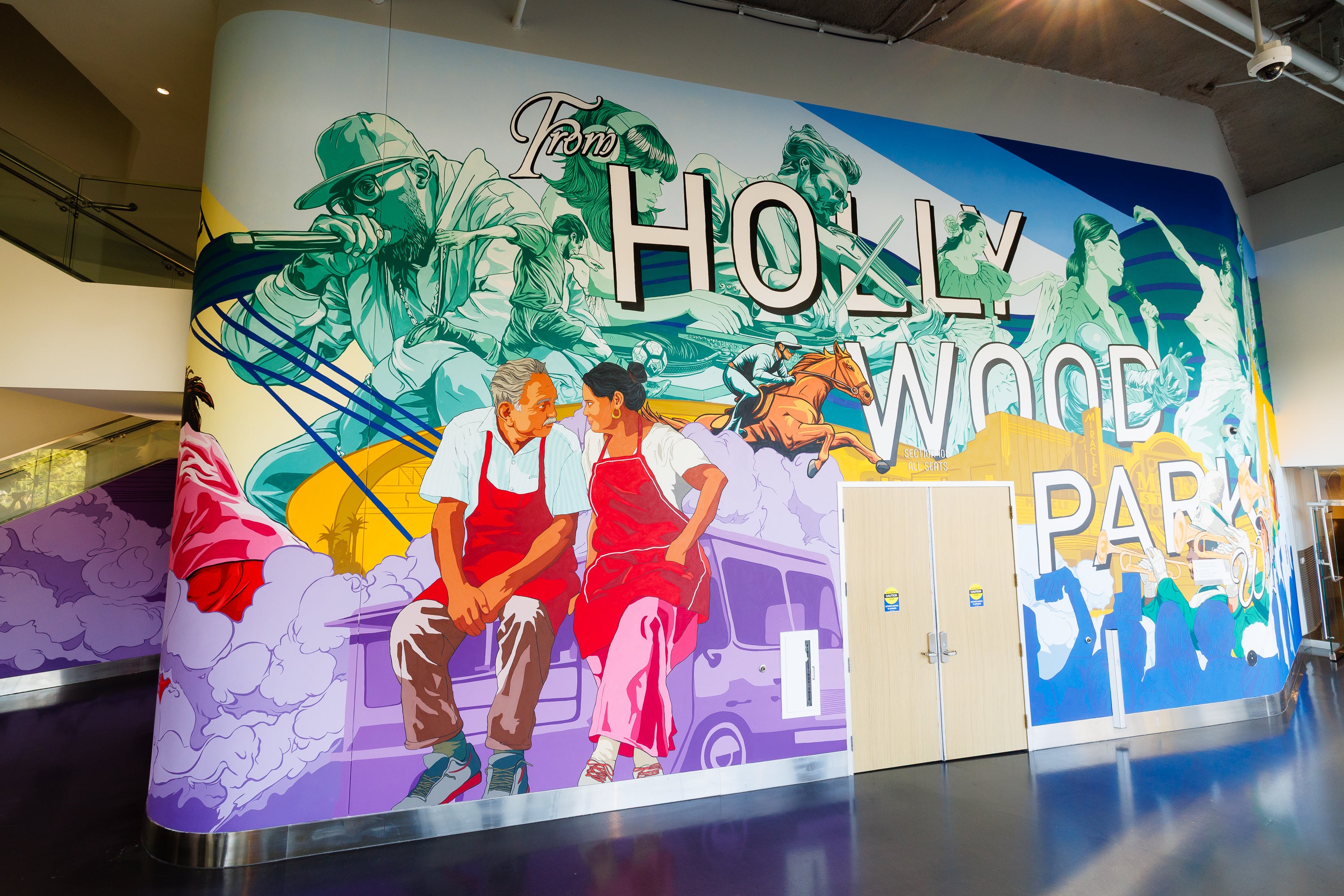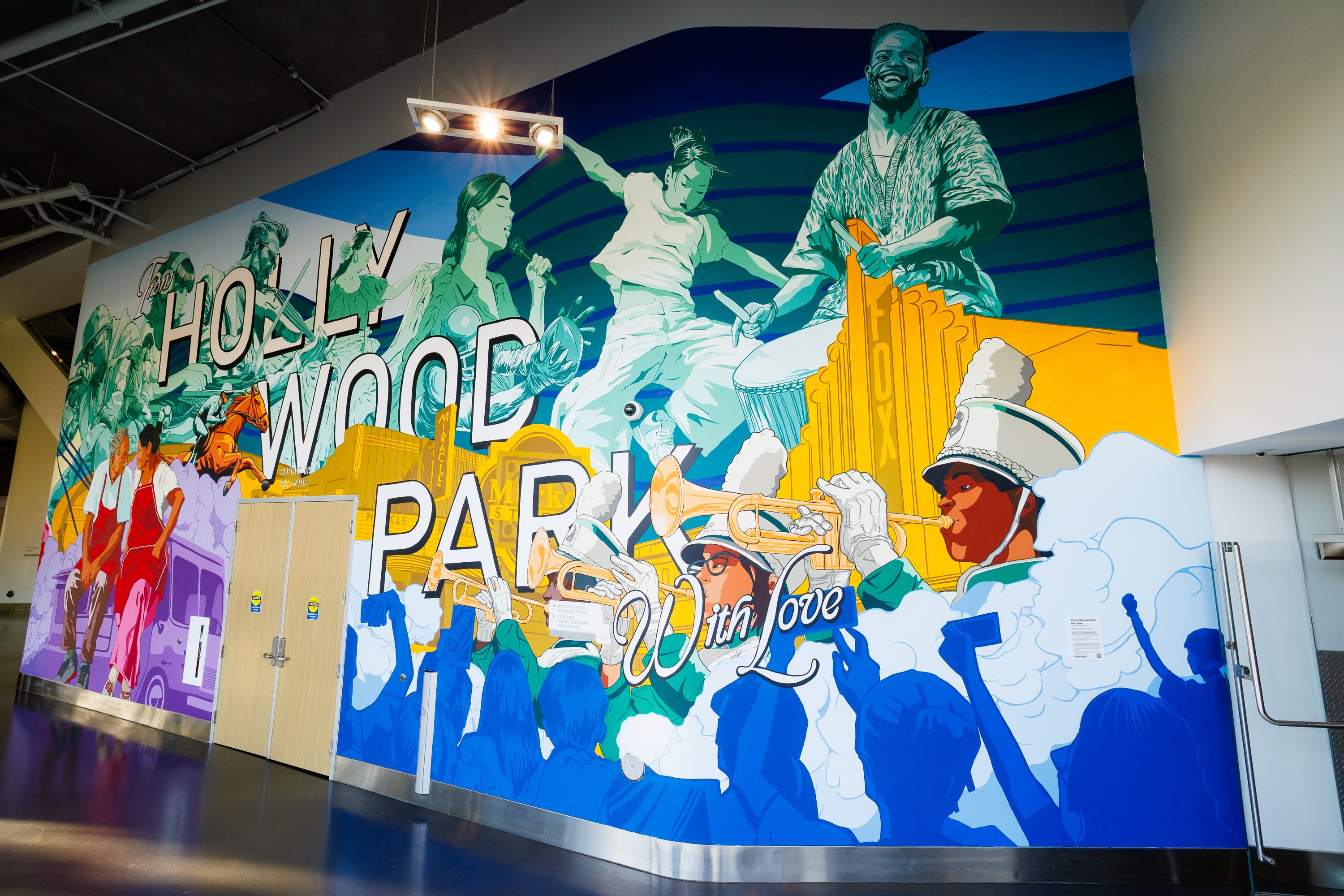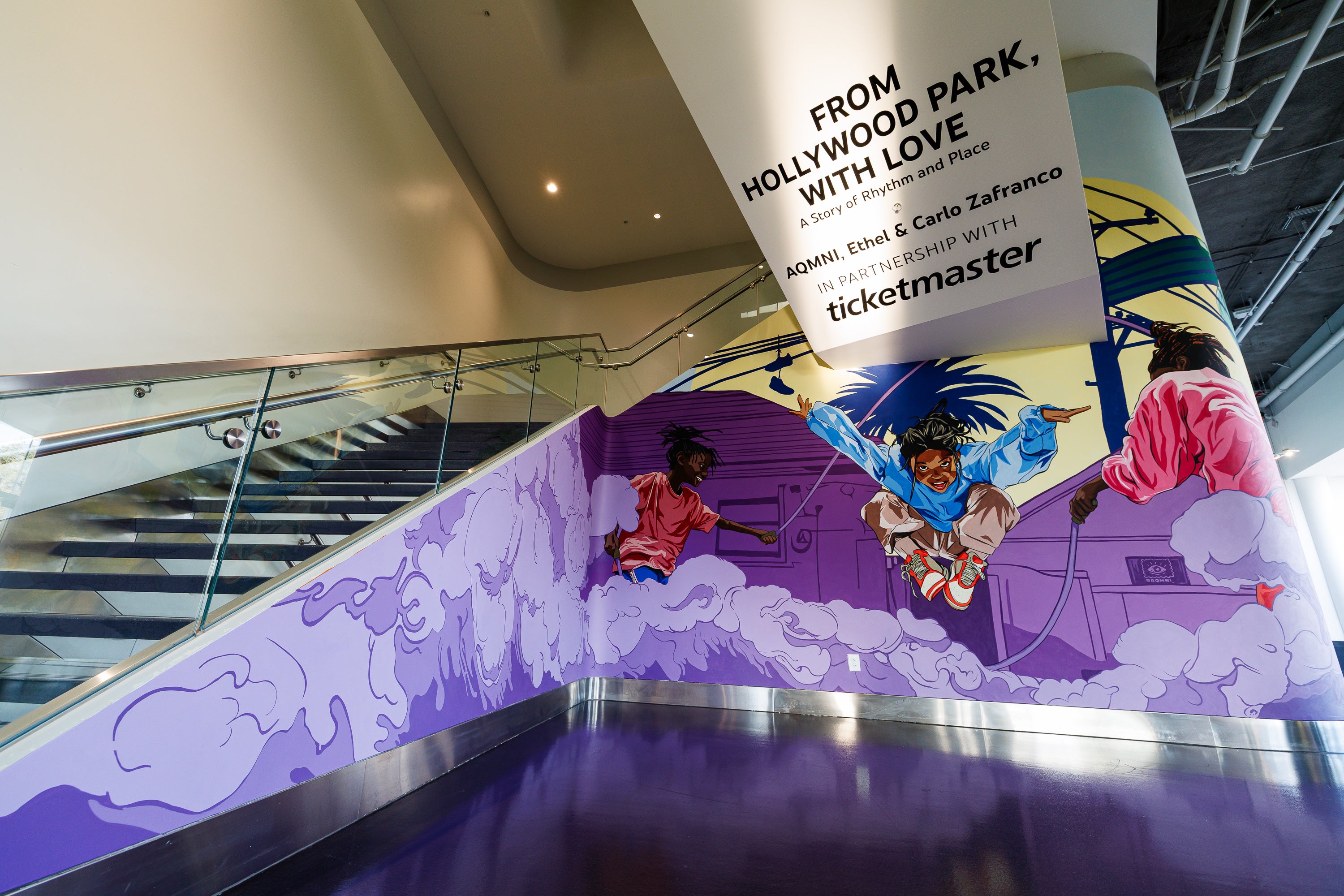 This mural is part of Ticketmaster's mission to invite artists to create original works that celebrate the diverse communities, cultures, and fans who support live entertainment. Designed to unfold as guests move through the space, the piece captures the pulse of live performance and a community where greatness begins- and returns.